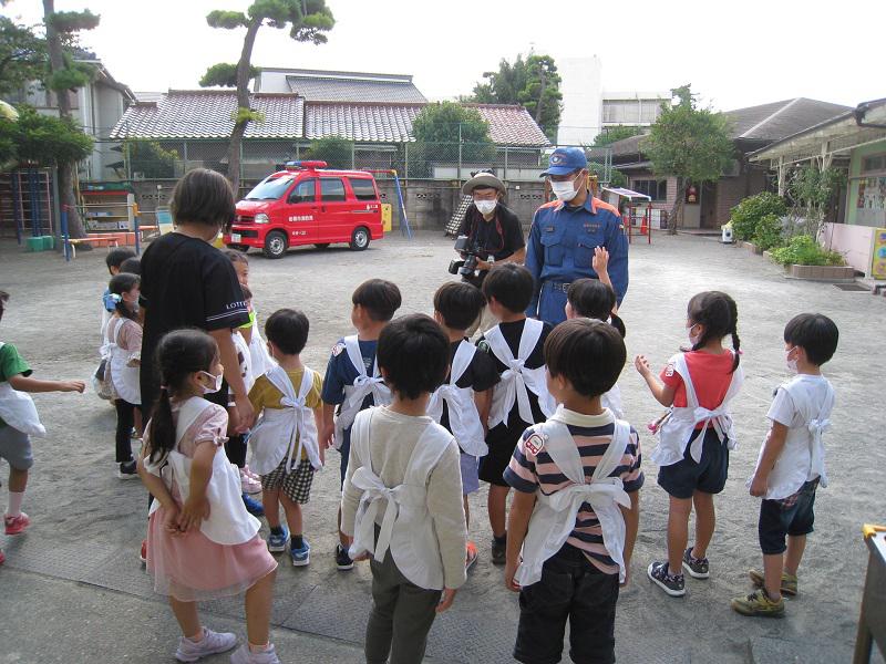 避難訓練をし、ホールで消防士さんのお話を聞いた後、火事のDVDを見て、火は怖いと泣きそうになっているお友達もいました。